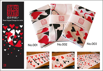 良縁成就 手ぬぐいシリーズ ■商品No.001// 恋のてぬぐい Aタイプ [寸法] 約30×90cm [価格] 1,575円(税込・送料別) ■商品No.002// 恋のてぬぐい Bタイプ [寸法] 約30×90cm [価格] 1,575円(税込・送料別) ■商品No.003// 恋のてぬぐい Cタイプ [寸法] 約30×90cm [価格] 1,575円(税込・送料別) >> 購入申込