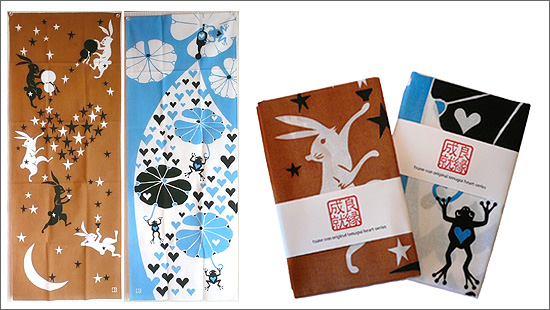 分業と言うコラボ。寺嶋聡さん御夫妻との出会い無くして有り得なかった手ぬぐい企画。オートメーションで無い、版づくりから染めまですべて一家総出の手作業、手づくりでの製品です。手仕事の私の理想とも一致しました。きっと原画をデジタルデータで写真製版で作れるところに依頼すれば労力もコストも安く出来たと思う…